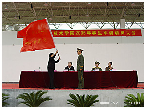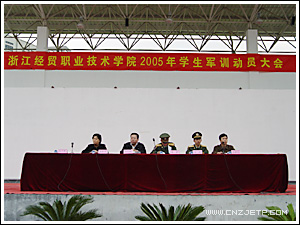10月22日下午,学院2005年军训动员大会在田径场隆重召开。学院党委副书记潘素芳,副院长周文根,军训团团长、杭州武警指挥学校周军,副团长李斌出席了动员大会。大会由学生处处长、本次军训团政委许兴苗主持。