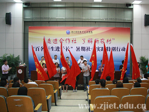 6月28日下午,学院在图书馆报告厅举行“走进合作社、了解新农村”百名师生进千社的2010年暑期社会实践特别行动出征仪式。院长李曙明、院长助理蒋丽君,相关职能处室领导,各实践分队指导老师和队员共200余人出席了启动仪式。仪式由招生就业处处长张瑶祥主持。