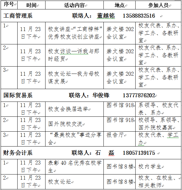 校友办联系人:邱雷鸣,联系电话:0571-86929812。