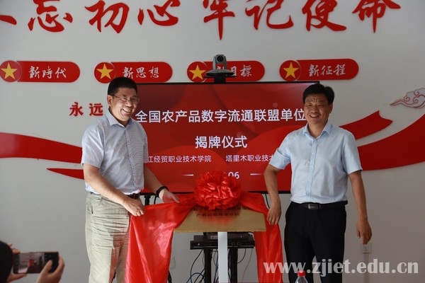 在塔里木职业技术学院调研期间,陈德泉与塔里木职业技术学院副校长李裕仁共同为“全国农产品数字流通联盟单位”揭牌。一师阿拉尔市教育局领导党组书记、局长凤树峰参加座谈会和揭牌仪式。