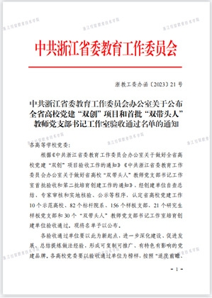 近日,浙江省教育厅公布了第二批全省高校党建工作标杆院系、样板支部培育创建单位验收通过名单,我校信息技术学院党总支、应用工程学院食品营养与检测教研室党支部顺利通过验收。