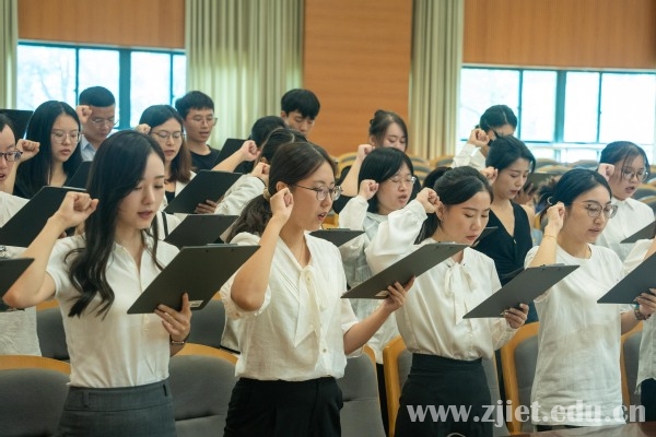 新入职教师在陈德泉领誓下庄严宣誓,新教师代表作了表态发言。