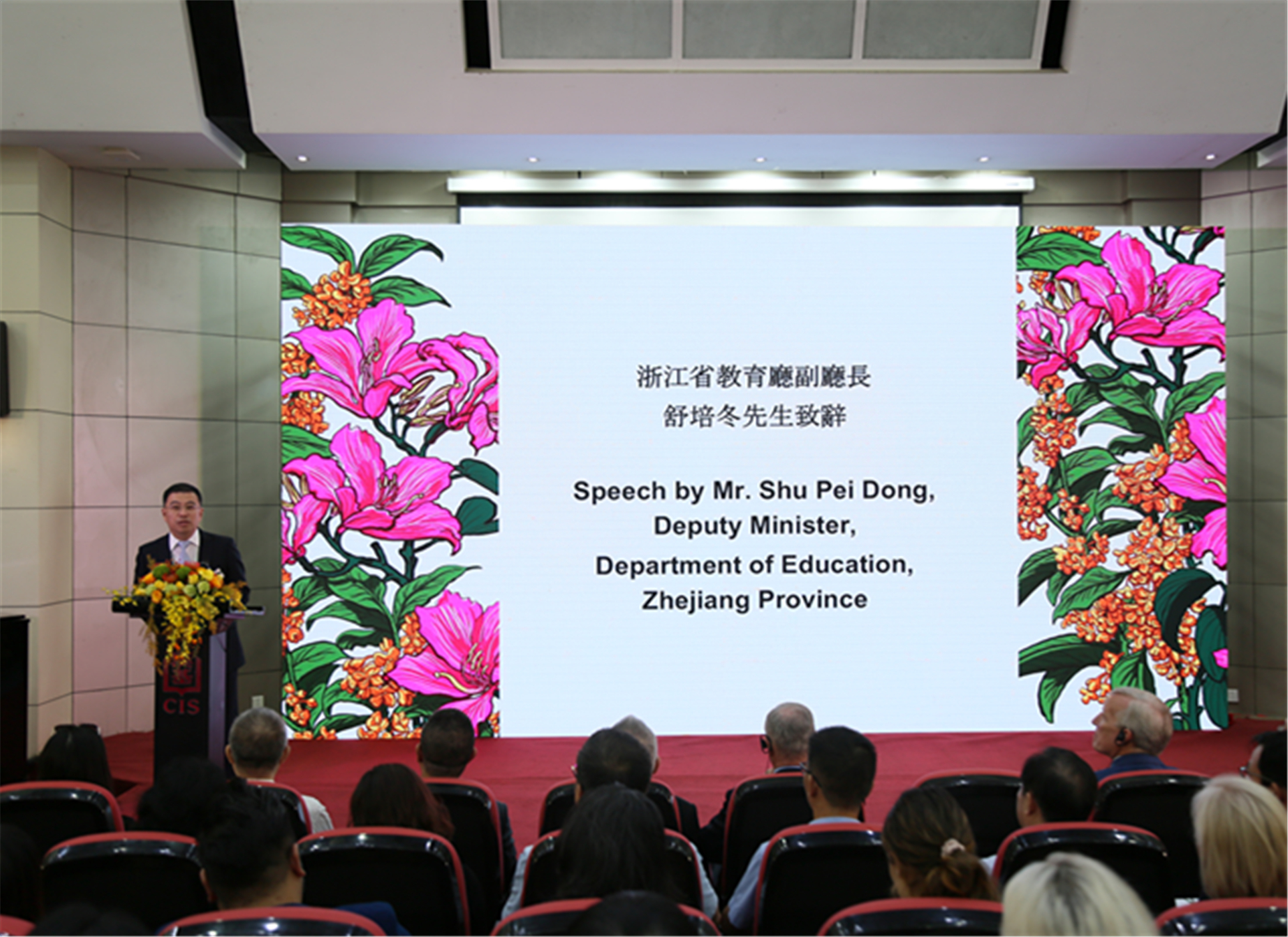 舒培冬在致辞中表示,香港汉基国际学校杭州项目创办十年来,坚持立德树人初心,秉承“中西融合,守正创新”的办学精神,倡导将“祖国作为课堂”的理念,培养了大批爱国爱港的优秀青年人才。他对香港汉基国际学校杭州项目提出三点期望:一是凝练特色,依靠学校优良传统和深厚积淀,结合浙江发展实际,融合内地和香港课程,不断培育项目特色,增强项目吸引力。二是扩大交流,深入走进浙江,与浙江学校、社会各界开展更多交流,感受祖国蓬勃发展,感悟共同富裕之路,努力搭建文化交流桥梁。三是创新探索,持续探索人才培养新模式,探索开展更宽领域、更深层次合作,全力打造浙港教育合作交流新标杆。他同时勉励同学们努力增长才干,立足香港、胸怀祖国,更好融入国家发展大局,为实现民族复兴贡献力量。