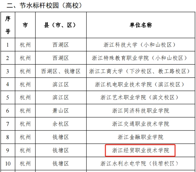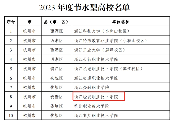 近日,浙江省水利厅公布了“浙江省2023年度节水标杆单位”和“浙江省2023年度节水型高校”名单,我校成功入选。